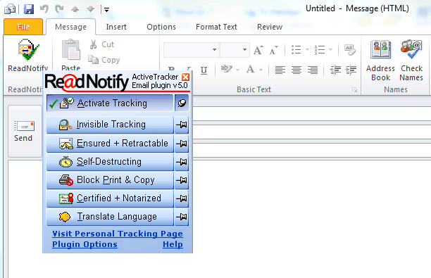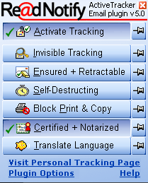 As well as displaying in your System Tray the Web Email Plugins include an additional ActiveTracker on / off selection in the compose pages of your Yahoo, Hotmail and Gmail web email programs.